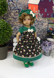 Green eyelet toe mary jane shoes with tan tights are included to complete the look. The tights are made by Wendy at Doll Secrets.